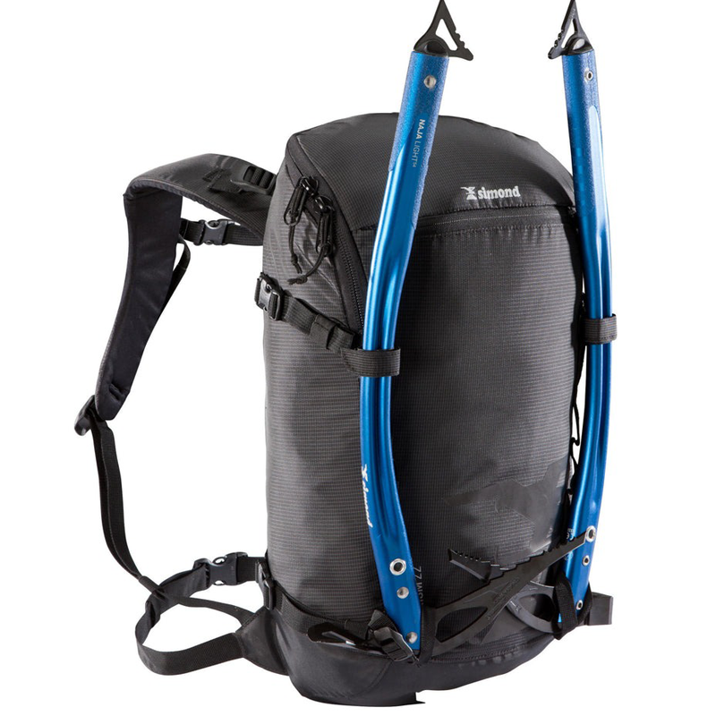 The Simond Alpinism 22L Mountaineering Backpack is a compact, durable, and versatile pack designed for alpine climbs, ski touring, and one-day mountaineering adventures. Built from tough 420D ripstop polyamide with a reinforced 600D polyester base and a water-repellent finish, it offers excellent resistance to wear and the elements. Weighing around 620–654 grams, it features a well-ventilated back panel with vertical foam padding, along with ergonomic shoulder straps, a chest strap, and a hip belt to ensure comfort and stability during high-movement activities.